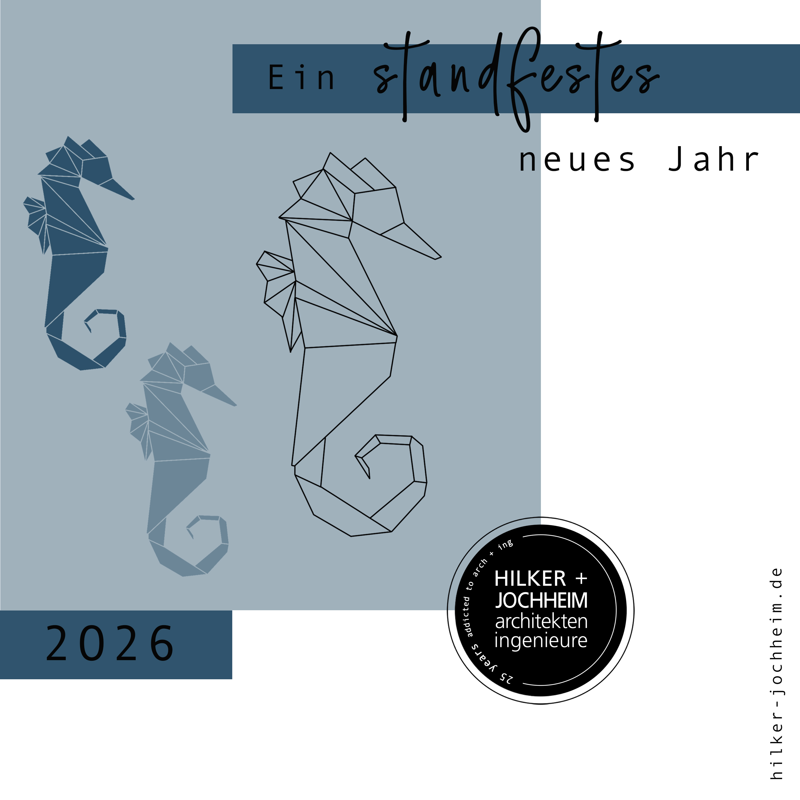 Möge das Seepferdchen daran erinnern, dass Stärke oft leise beginnt: im festen Halt, im Mut, auch in bewegten Zeiten den eigenen Kurs zu halten. So wie es sich mit seinem geschwungenen Schwanz standfest im Meer verankert, möge das neue Jahr von Entschlossenheit getragen sein.